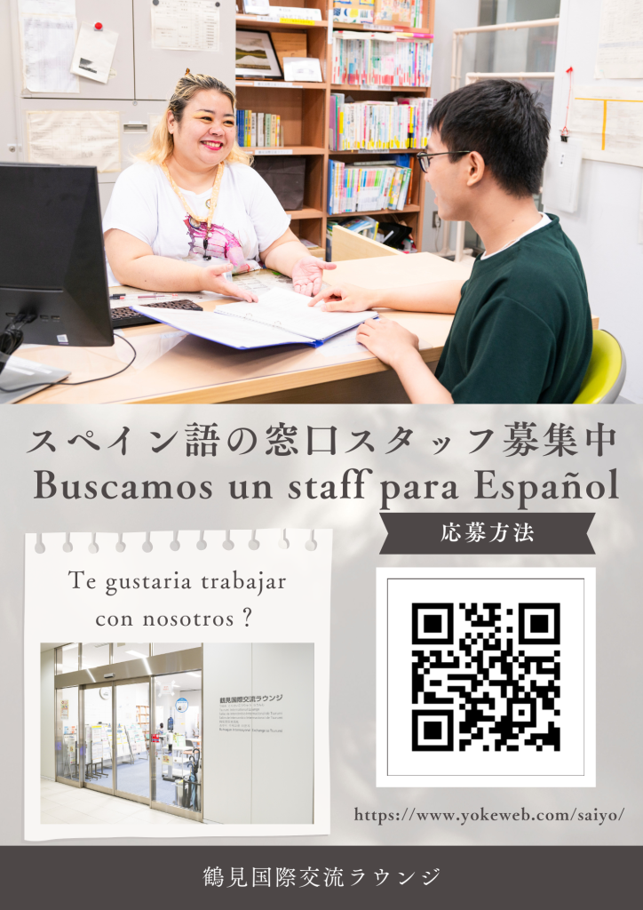 スペイン語の窓口スタッフ募集お知らせ2026.01.26 鶴見国際交流ラウンジでは、スペイン語の窓口スタッフを募集しています。スペイン語を必要としている方と、地域をつなぐ大切な役割です。あなたの語学力を、地域のために活かしてみませんか。ご応募をお待ちしています。 https://www.yokeweb.com/saiyo