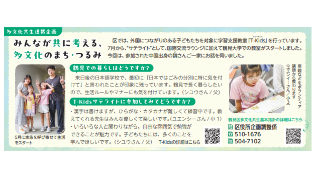 広報よこはま鶴見区版1月号に学習支援教室「T-Kidsサテライト」が紹介されました。